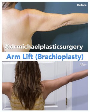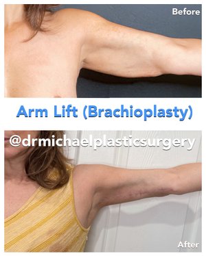 Brachioplasty, commonly known as arm lift surgery, removes excess skin and fatty deposits as well as tightens the underlying muscles. Anyone who has loose or saggy skin and fatty tissue of the upper arm could be a candidate for an arm lift. "Droopy" arms are often a result of weight loss but can also be caused by the natural aging process and lead to difficulty exercising, as well as wardrobe issues. Excess arm skin may also cause physical discomfort and skin irritation by rubbing on the inside of the upper body and/or breasts.